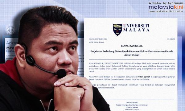 Um Denies Honorary Phd Awarded To Marketing Whiz Azizan Osman